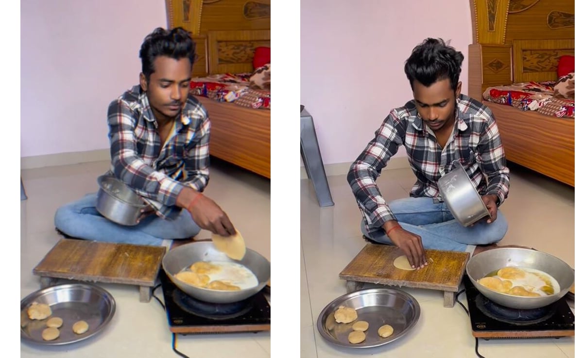 Man Uses Pateela To Make Perfect Poori: सोशल मीडिया पर इन दिनों एक ऐसा वीडियो वायरल हो रहा है, जिसे देखकर लोग हैरान हैं. इस वीडियो में एक शख्स पतीले की मदद से गोल-गोल पूड़ियां बनाता नजर आ रहा है. दरअसल, यह शख्स पहले पतीले में आटा गूंथता है और फिर उसी पतीले की मदद से पूड़ियां भी बेल लेता है. सोशल मीडिया यूजर्स को शख्स का ये जुगाड़ भरा तरीका काफी पसंद आ रहा है. शायद यही वजह है कि, यह वीडियो इतना देखा और पसंद किया जा रहा है.