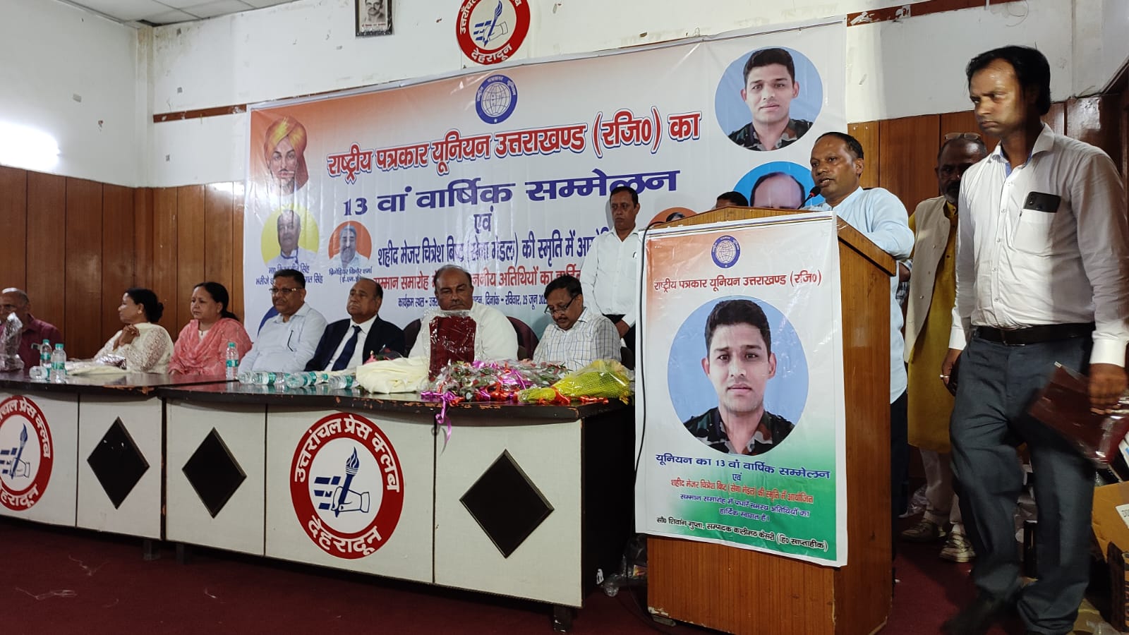 देहरादून 25 जून राष्ट्रीय पत्रकार यूनियन का 13 वा सम्मेलन शहीद श्री चित्रेश बिष्ट जी के नाम पर सम्मान समारोह का आयोजन किया गया। इस सम्मान समारोह में मुख्य अतिथि शहीद-ए-आजम भगत सिंह जी के भतीजे किरणजीत सिंह जी, कार्यक्रम की अध्यक्षता राष्ट्रीय पत्रकार यूनियन के प्रदेश अध्यक्ष विकास गर्ग ने की ,