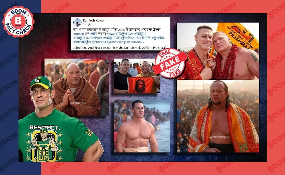 CLAIM: WWE रेसलर दि ग्रेट खली, जॉन सीना, द रॉक, अंडरटेकर प्रयागराज में आयोजित महाकुंभ 2025 में पहुंचे.FACT CHECK : बूम ने फैक्ट चेक में पाया कि WWE रेसलर की…