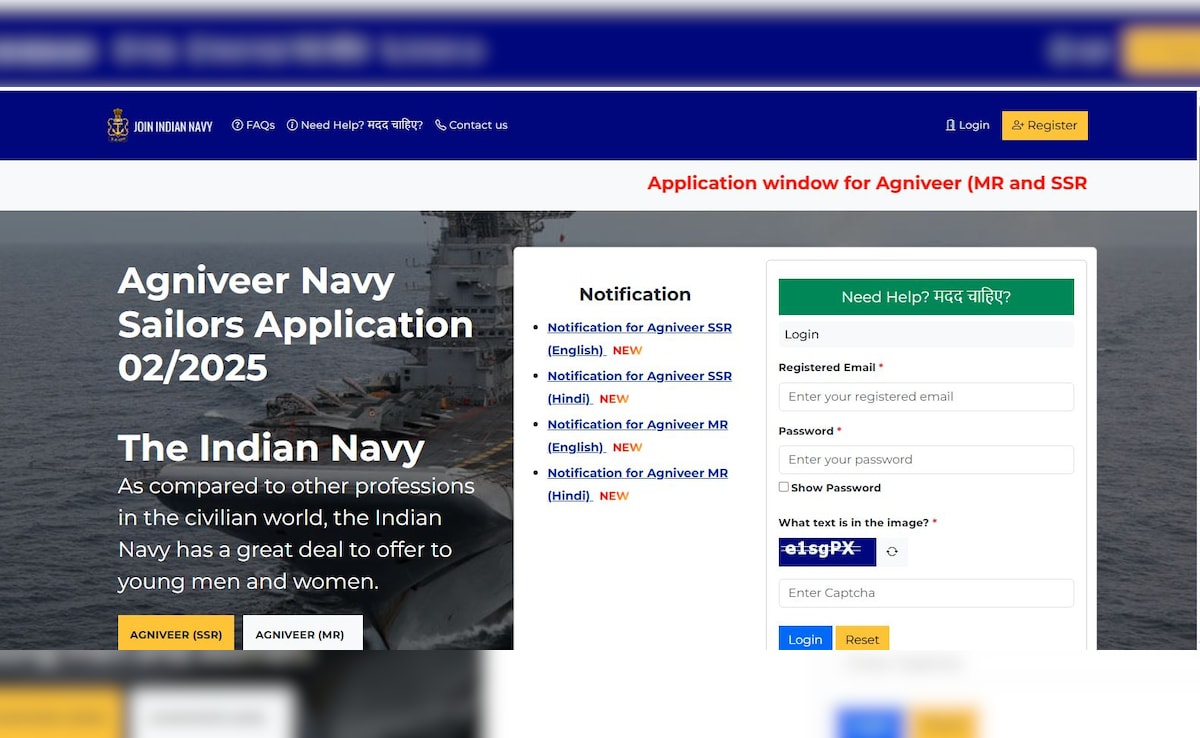 Indian Navy Agniveer MR, SSR Registration: भारतीय नौसेना (Indian Navy) ने अग्निवीर एमआर/एसएसआर 02/25, 01/2026 और 02/2026 बैचों के लिए रजिस्ट्रेशन करने की अंतिम तारीख को बढ़ा दिया है. अब…