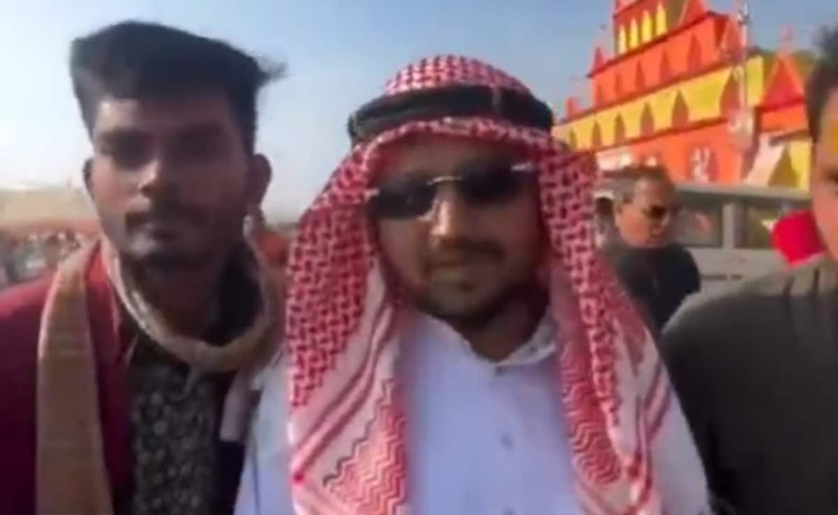 इस वीडियो में देखा जा सकता है कि एक शख्‍स अरब का शेख बनकर महाकुंभ में घूमता नजर आता है. अरब के शेखों जैसी सफेद पोशाक और आंखों पर काला चश्‍मा पहनकर यह शख्‍स बहुत ही रौब में चल रहा है. इसके साथ में कुछ अन्‍य युवक भी नजर आ रहे हैं.